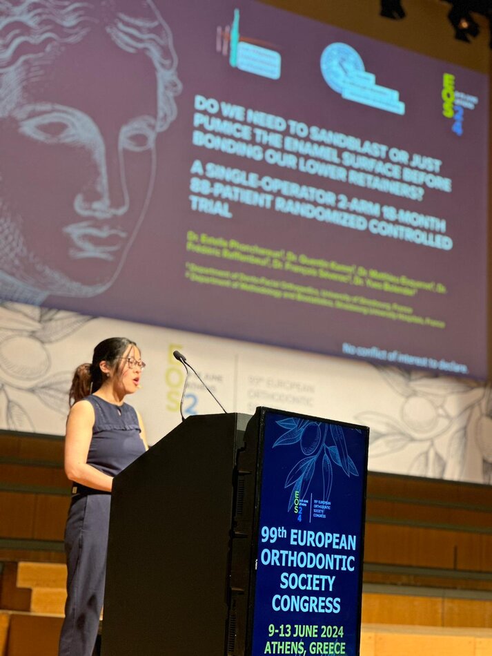 Dr Estelle Phonchareun intervenant lors du 99ième congrès de l’European Orthodontic Society – Athènes – Juin 2024