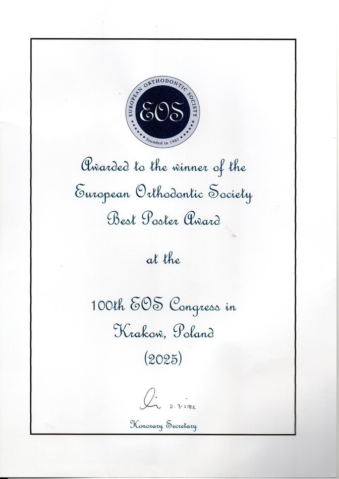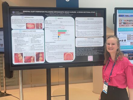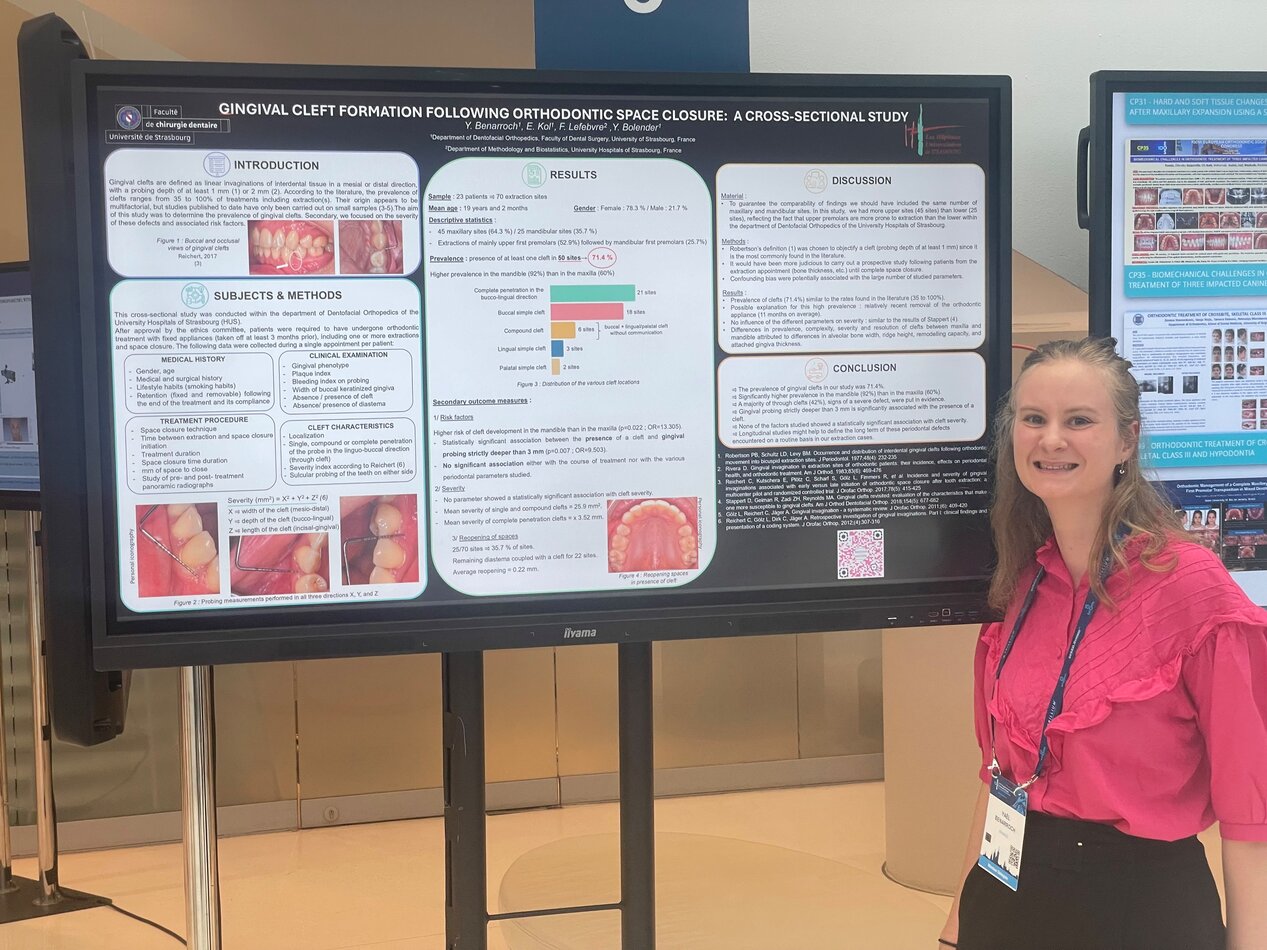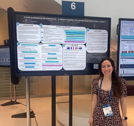 Dr Yaël Benarroch, lauréate d'un des cinq prix du meilleur poster, présentant son travail lors du 100e Congrès de l'European Orthodontic Society, à Cracovie - Juin 2025