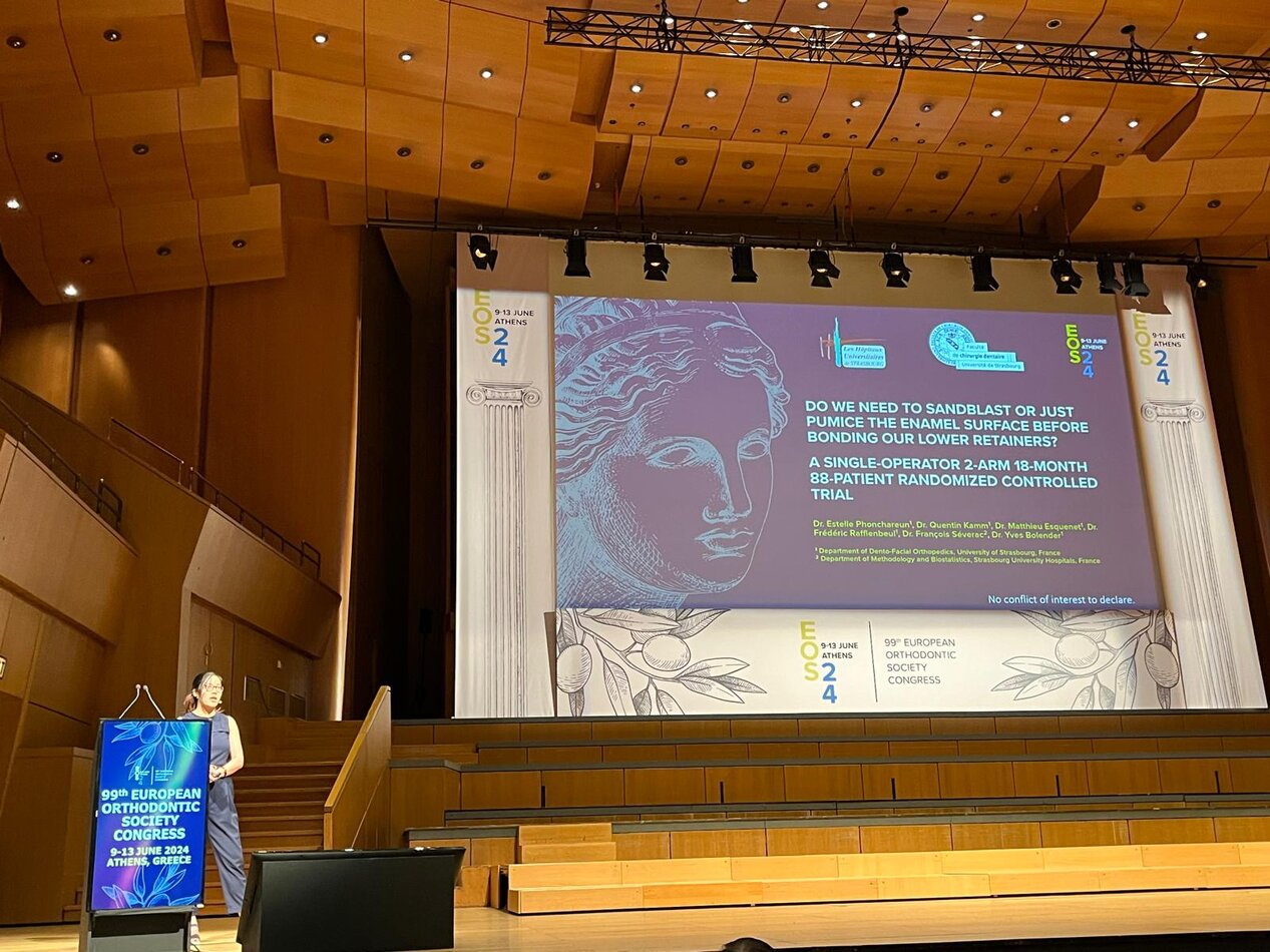 Dr. Estelle Phonchareun speaking during the 99th European Orthodontic Society Congress in Athens – June 2024